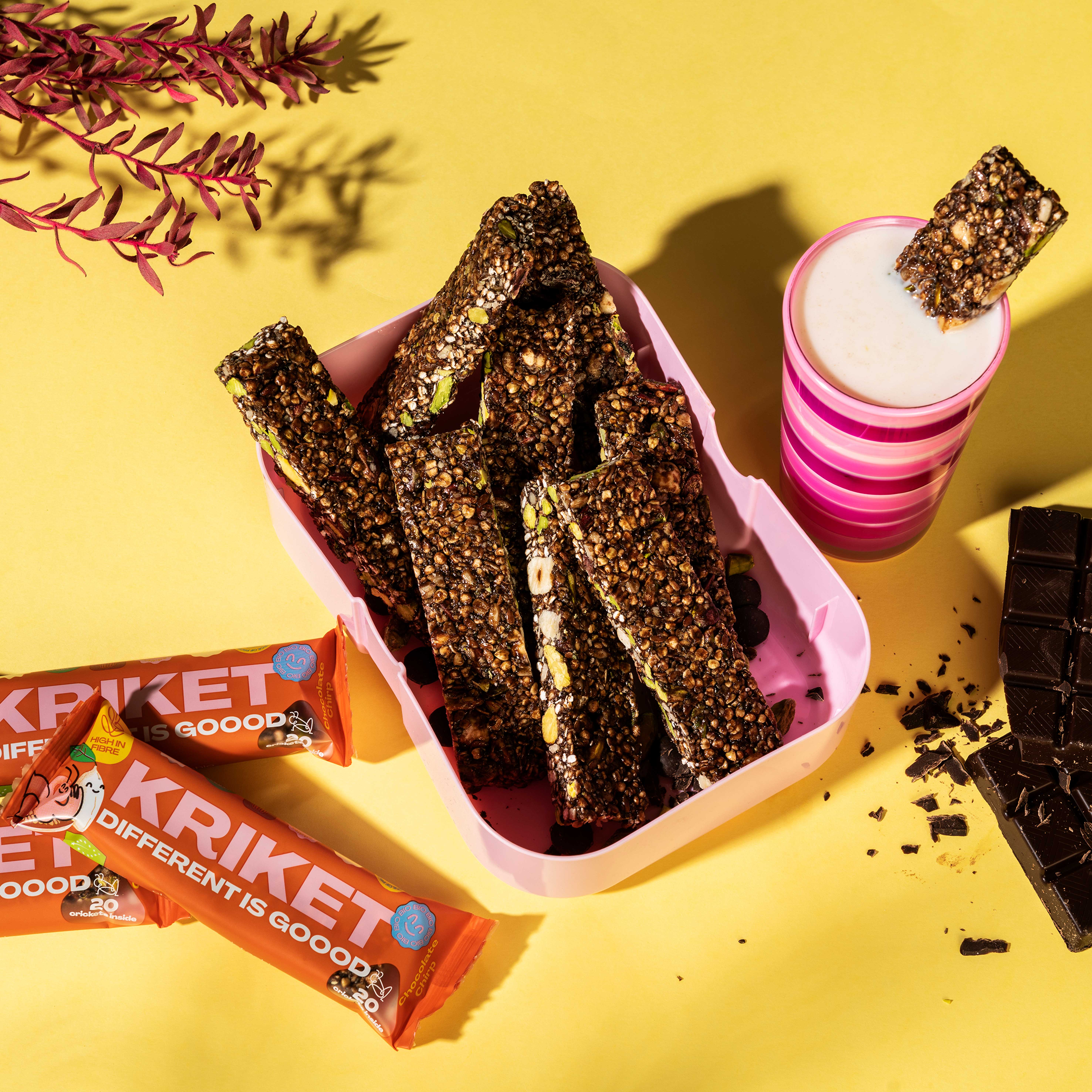 Un tentempié saludable y perfectamente equilibrado, lleno de frutos secos, semillas y cereales ecológicos... ¡Y polvo de grillo!
